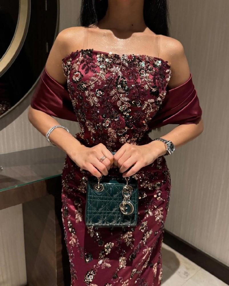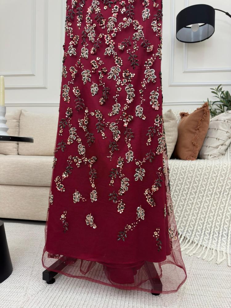 كلفة متقنة تضفي لمسة فاخرة وتزيد من تألق الفستان.
