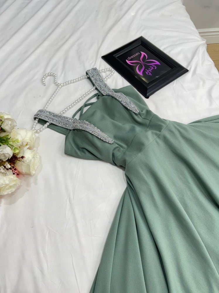الخامه : كريب استرتش كلووش 6 متر + علاقي كرستال لمعه رااقي + فيبر نافش اسفل الفستان