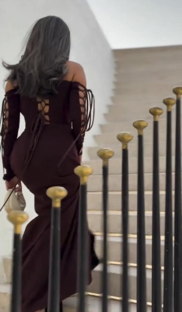 كلفة متقنة تضفي لمسة فاخرة وتزيد من تألق الفستان.