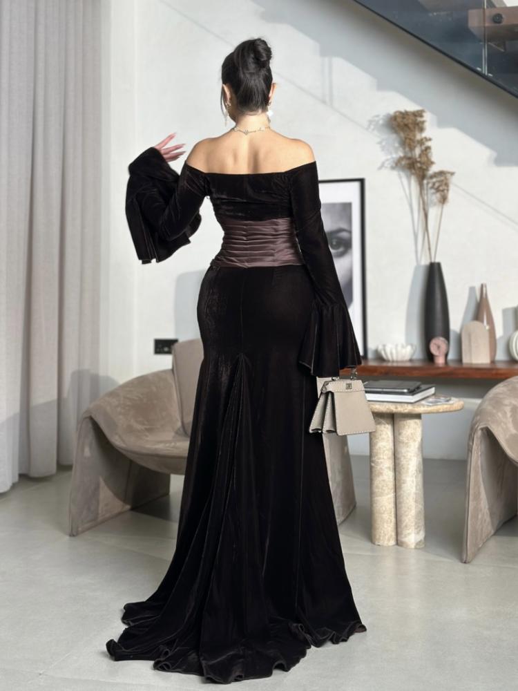 فستان سهرة —- لدى ترف اكتشفي روعة الأناقة مع فستان المذهل، مصنوع من خامة ملكية ذات جودة عالية ومزين بكلفة متقنة و يتميز بلون الرائع الذي يضفي لمسة من الجمال والرقي و تصميمه مثالي للنساء اللواتي يبحثن عن الأناقة والتميز في جميع المناسبات. احصلي على الفستان المثالي الذي سيجعلك تتألقي بأناقة لا مثيل لها