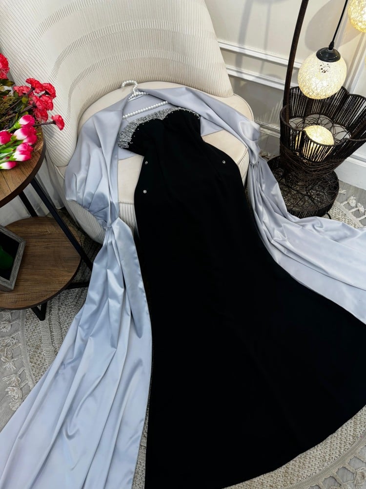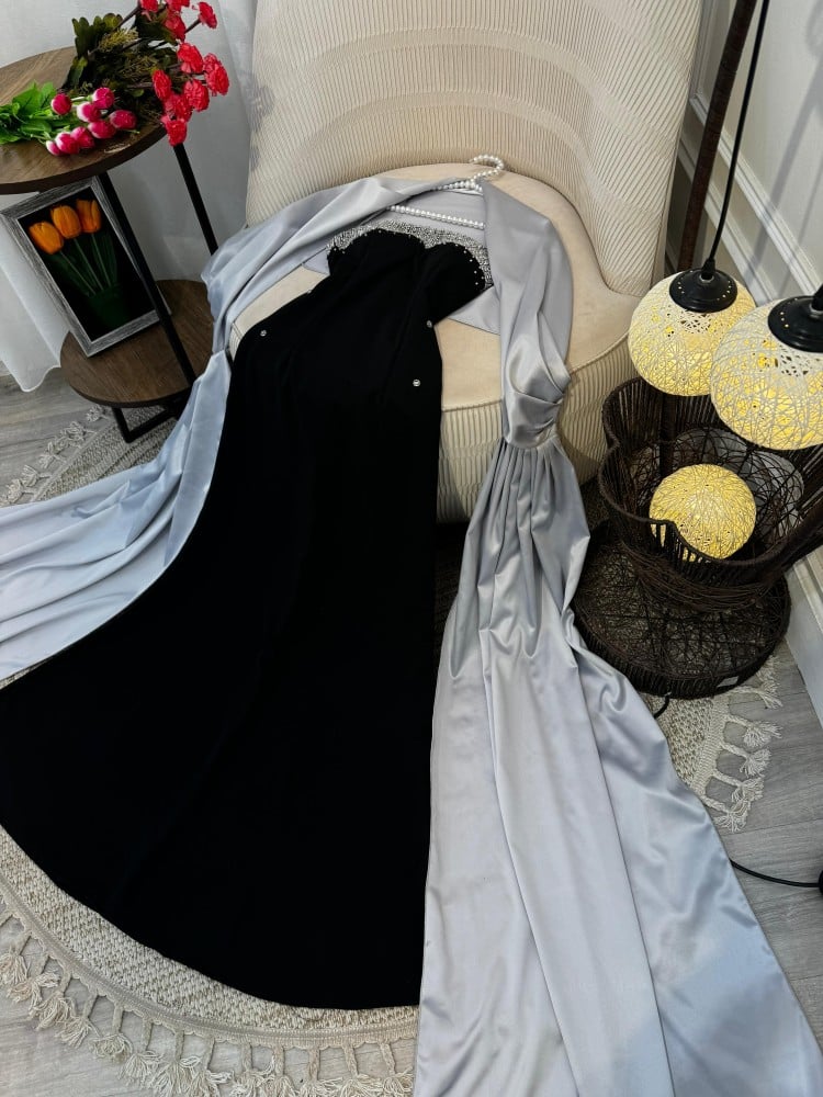 الخامه لكرا استرتش + تفته استرتش + تطريز يدوي كرستال